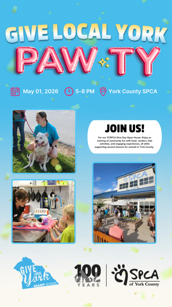 Join us at the York County SPCA for our Give Day Open House, a community PAW-ty in celebration of Give Local York! This family-friendly event is the perfect way to come together, have fun, and support a lifesaving mission.