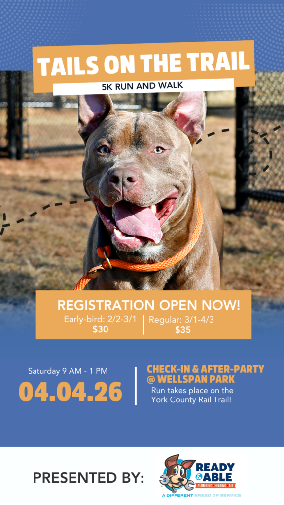 Join the York County SPCA for our inaugural Tails on the Trail 5K, a community-focused run/walk benefiting animals in need. This fun, family-friendly event brings together animal lovers, local businesses, and neighbors for a meaningful morning of movement, compassion, and community impact!